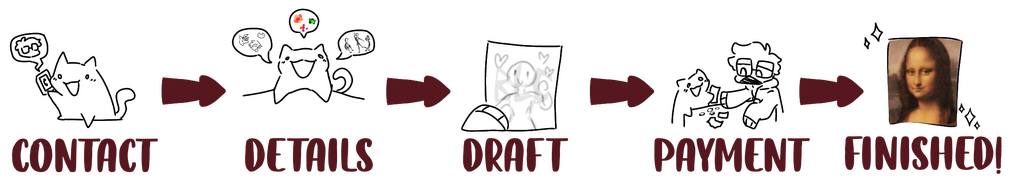 Throw me a dm asking for a commission! Once I respond, give EVERY detail you can. References, design sheets, specific poses/scenes, all that jazz! A small bio on the character(s) I'm drawing could also help with capturing them properly, but that's totally optional.After details are sorted out, I'll do my first draft! The version before lining to hear feedback/any additional changes. If everything's chill, here's where I prefer to receive payment and will finish it up afterwards!!